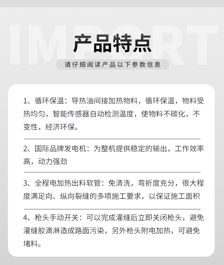 瀝青灌縫機(jī),使用原料為瀝青灌縫膠,主要用于瀝青路面不規(guī)則裂縫、混凝土路面、橋梁伸縮縫、上下水道、煤氣管埋設(shè)機(jī)鋪裝路面的連結(jié)處防水處理,而專(zhuān)門(mén)設(shè)計(jì)、生產(chǎn)的瀝青補(bǔ)灌縫專(zhuān)業(yè)機(jī)械。