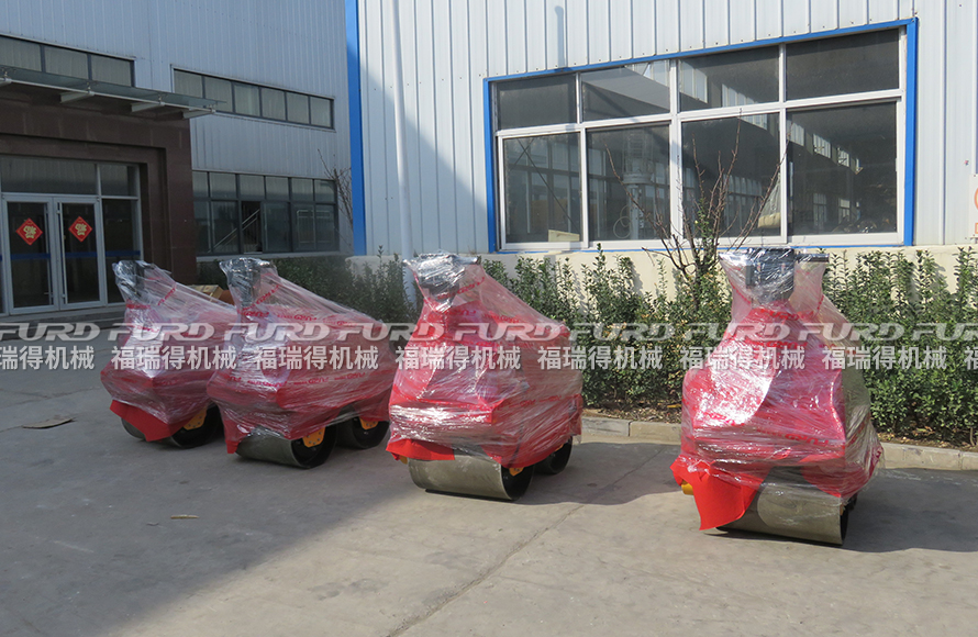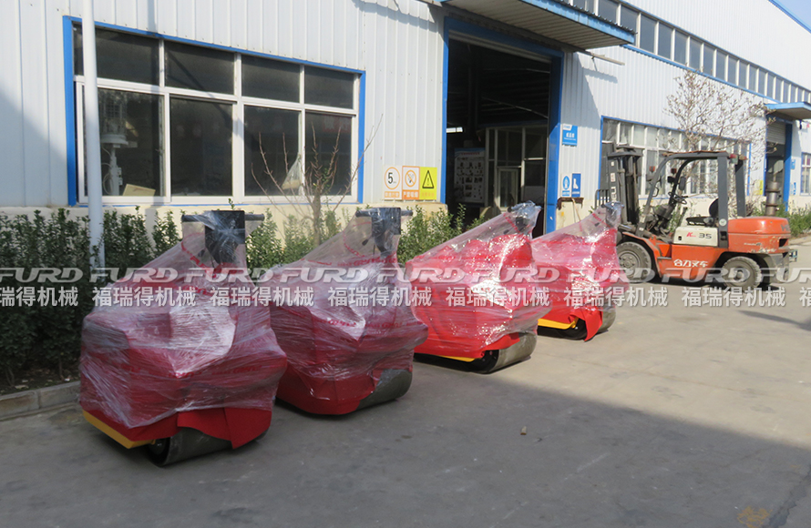 3月12日,福瑞得機(jī)械將廣州客戶一周前訂購(gòu)的4臺(tái)手扶雙輪壓路機(jī)打包發(fā)出。