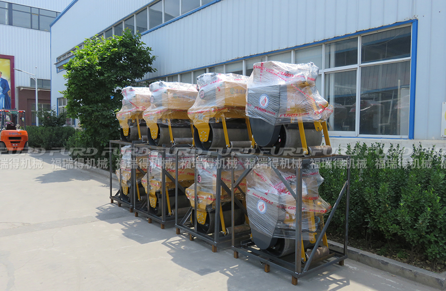 福瑞得12臺(tái)手扶單鋼輪壓路機(jī)打包裝車發(fā)往河南