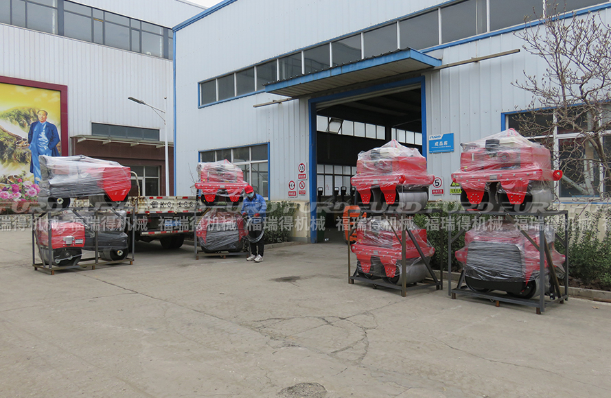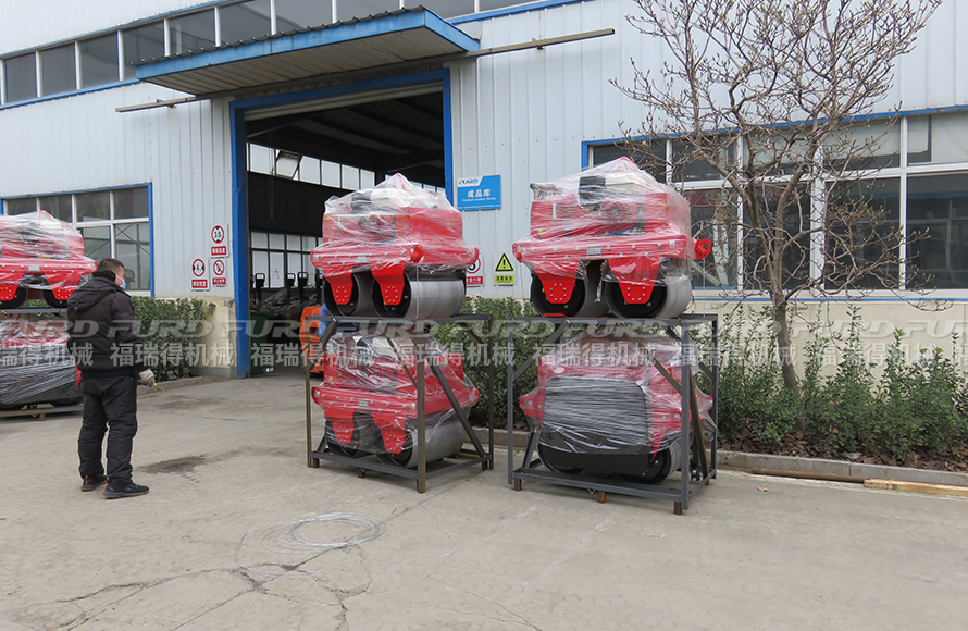 福瑞得8臺(tái)小型雙鋼輪壓路機(jī)打包裝車發(fā)往臨沂