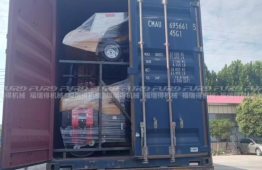 福瑞得一批小型路面機械設(shè)備裝車出口南非