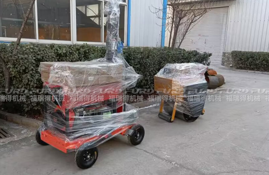 福瑞得1臺手扶壓路機和移動燈車打包發(fā)往紹興