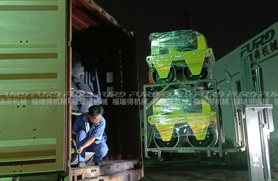 福瑞得一批路面壓路機裝柜出口馬來西亞