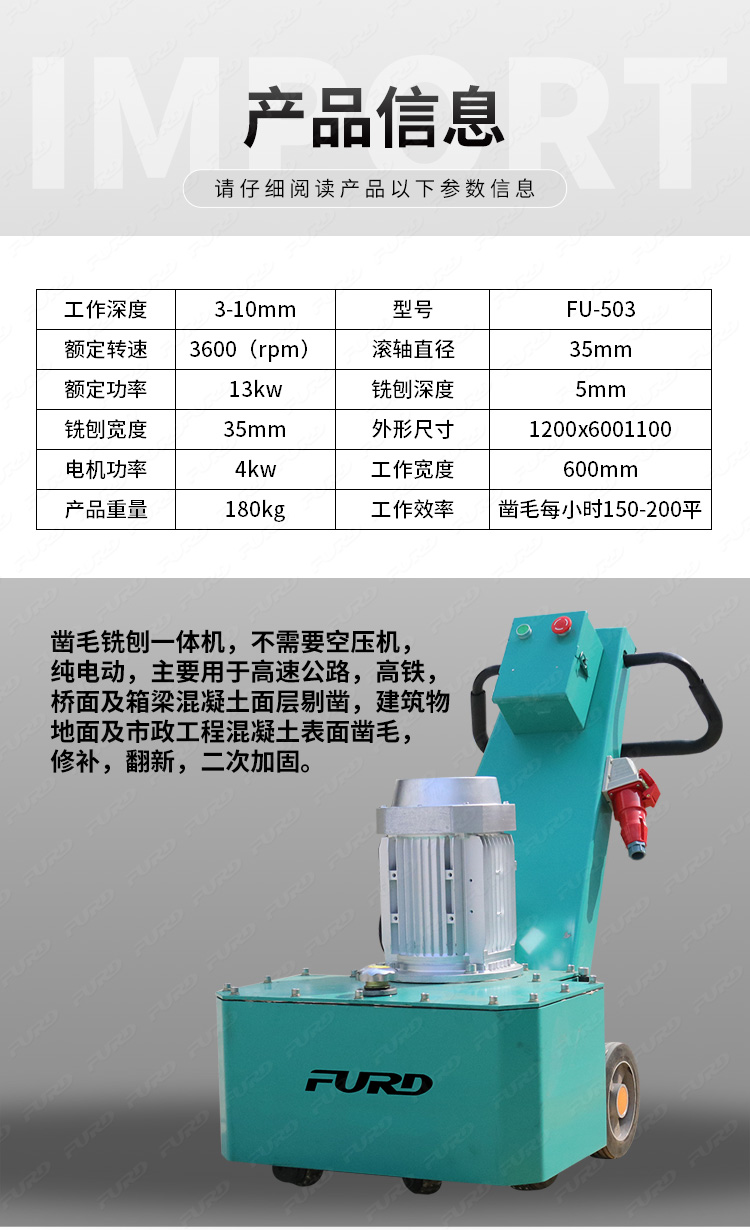 銑刨鑿毛一體機(jī)同時(shí)具備了銑刨機(jī)和鑿毛機(jī)這兩個(gè)機(jī)器設(shè)備的功能,不但效率高而且為您節(jié)省費(fèi)用,提高工作效率!該機(jī)器可以用于高速公路、高鐵、橋面及箱梁混凝土層剔鑿,建筑物地面及市政工程混凝土表面鑿毛、修補(bǔ)、翻新、二次加固。