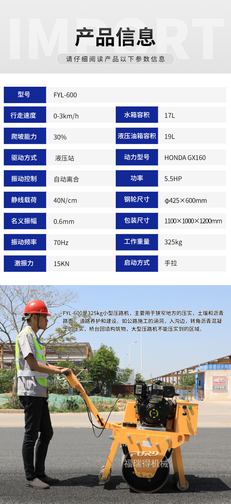 主要用于溝渠基礎(chǔ),道路,體育場(chǎng)地的壓實(shí)整平,也可用于壓實(shí)瀝青表面的作業(yè)。