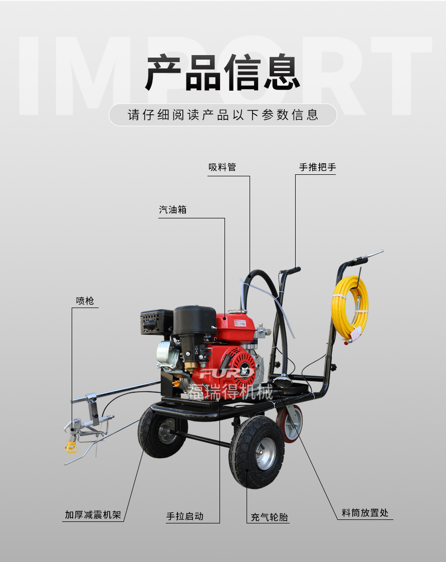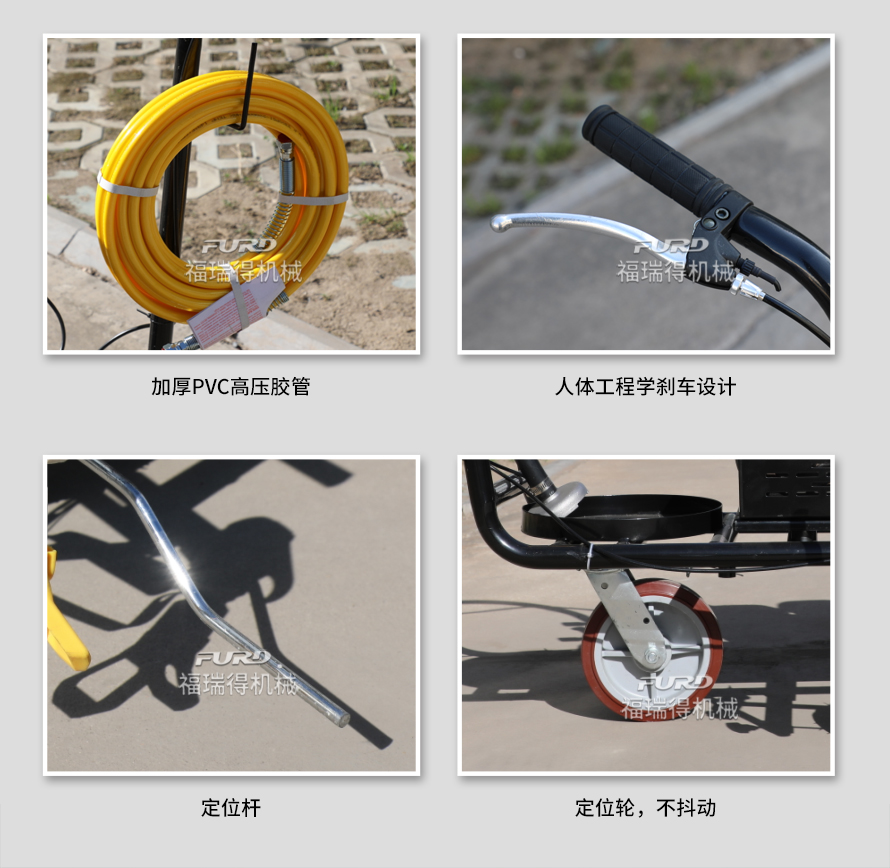 小型手推式道路劃線機(jī)是一種在道路、停車場、廣場和跑道等平整地面上劃出不同約束、指引和警示等規(guī)則限制標(biāo)志的路面施工機(jī)械。最常見的就是在馬路上劃斑馬線,在路上劃車庫線、停車線等等應(yīng)用于小型工程、短途施工,活動(dòng)方便,靈活操作。