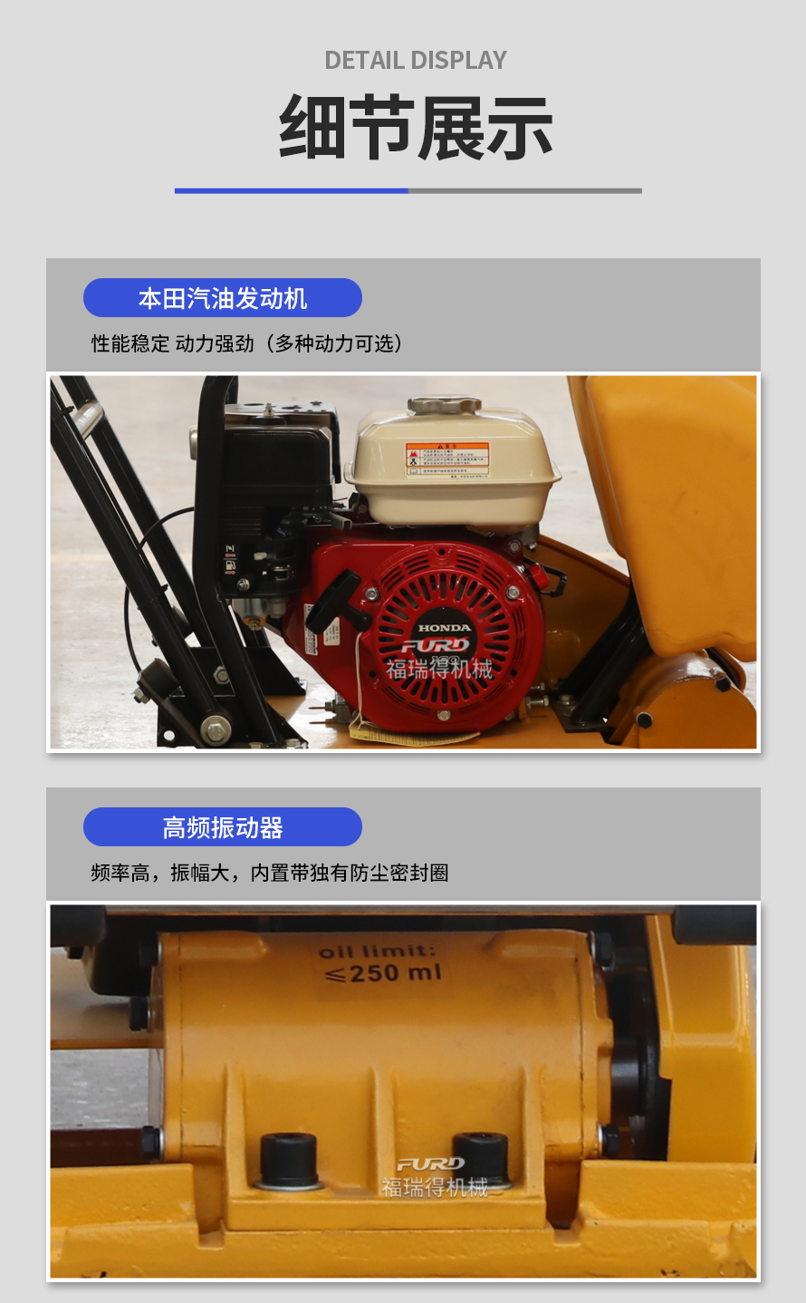 適用于路基邊緣、橋涵、管道、溝槽底部等狹長地帶的壓實。 本田汽油動力,名牌品質(zhì)保證。